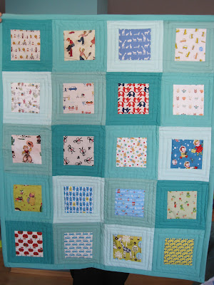 We were away for a short trip with the camping van and in the evening I finished hand sewing the binding onto the two baby quilts below. Phew. One more to go (decided that baby no. 5 is going to get something else!).